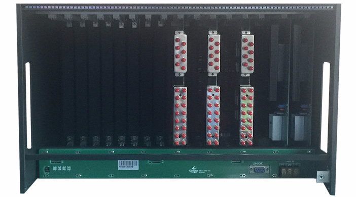 ZMUX-1200 由機箱、電源板和E1倒換板構成。機箱采用標準19英寸6U高、插卡式結構,共有16個板卡插槽,包括2個電源板插槽,14個E1倒換板通用插槽??蛇x:8進4出 E1倒換板、4進2出 E1倒換板,最大提供56路重要E1信號自動保護功能。
